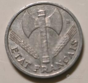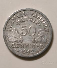 1 x 50 Centesimi 1942: Rara versione dello Stato Francese (Vichy) con la Franciaisca (ascia).