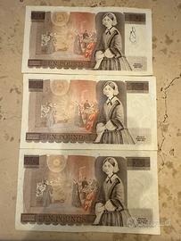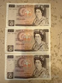 Lotto di 3 banconote da 10 sterline perfettamente conservate vendo