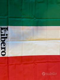 Vendesi lotto di 3 bandiere italiane usate: 1) 130x60cm 2) 100x72cm (con logo Libero Quotidiano) 3) 87x60cm