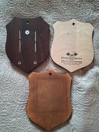 Vendo per inutilizzo lotto di 3 crest militari dell'Arma dei Carabinieri, tutti in buoni condizioni. I pezzi sono montati su basi in legno e presentano fregi in metallo e smalto.