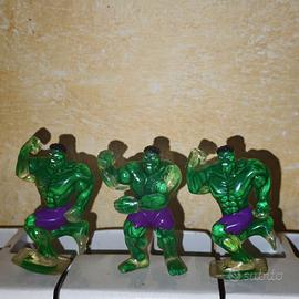 3 sorpresine vintage di Hulk, trovate nei cereali Nesquik nel 2003. 2 modelli differenti più 1 doppione (ideale per scambi o per completare altre collezioni). Serie promozionale per il film "Hulk". Materiale: Plastica verde traslucida con dettagli dipinti. Condizioni: Molto buone, i marchi Marvel/Nestlé sono ben leggibili sul retro. Dimensioni: Altezza circa 6 cm. Ottimi per chi vuole completare il set da 5 pezzi dell'epoca! 📦 L'imballaggio è fatto in modo da proteggere al 100% l'articolo 🚚 Spedizione veloce entro 48 ore massimo dall'acquisto ✅ 100% di affidabilità e serietà 💬 Per qualsiasi info non esitate a scrivermi