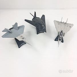 Set composto da tre riproduzioni in scala di celebri caccia statunitensi, ideali per collezionisti e appassionati di aviazione: