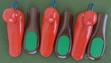 Lotto di 3 spazzole leva pelucchi lanugine, a forma di anatra, made in Hong Kong (design U.K). Sono oggetti vintage anni '90. Misurano approssimativamente 15 x 5 cm di base e 7 cm di altezza. Sono realizzate in 2 parti plastiche. Il corpo dell'anatra è dotato di spazzola e la base funge anche da calza-scarpe. La condizione è pari al nuovo. Spedite con imballo accurato.