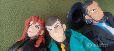 Lotto 3 personaggi originali della serie Lupin III, action figure in scatola, pre-assemblati, ispirati alla 1^ serie TV, prodotti da Medicom nel 1997(?), made in Japan, altezza 28 cm circa.