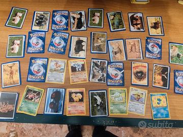 Lotto 34 carte Pokemon con adesivo sul retro
