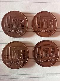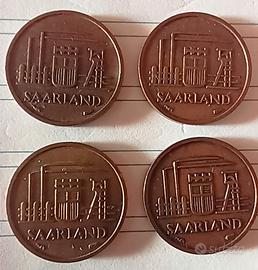 lotto di 4 monete da 10 Franken del 1954 Germania Saarland in ottime condizioni