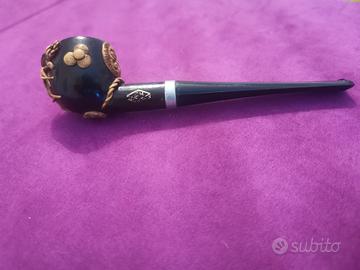Vero affare per collezionisti e amanti del design vintage. Vendo splendido lotto di 4 pipe ornamentali e da fumo, pezzi unici caratterizzati da materiali pregiati e lavorazioni artigianali di alta qualità. Il lotto comprende: Pipa Figurale in Schiuma di Mare (Meerschaum): Testa scolpita a mano raffigurante un busto di dignitario orientale con turbante. Condizioni eccellenti, quasi mai fumata (colore bianco originario), scultura nitida e dettagliata. Pipa Artistica SH - Made in Italy: Pezzo firmato con logo dorato originale. Design ispirato all'iconografia andina con corpo scuro e finissima lavorazione in filigrana metallica. Pipa Orientale a "Farfalla": Modello da appoggio con base piatta sagomata. Lavorazione metallica in filigrana con catenella originale. Nota: il bocchino terminale in legno è spezzato, pezzo ideale per amatori o restauro. Pipa Etnica Decorativa: Design coordinato in stile andino con dettagli geometrici Inca e cannello lavorato. Integro e di grande impatto estetico
