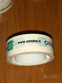 lotto stock di quattro rotoli di nastro adesivo con logo marca OMNITEL (società di telefonia mobile) vintage retrò degli anni 90' per carta / busta, lo scotch è nuovo non usato, un po invecchiato dal tempo trascorso, vedi foto in dettaglio.