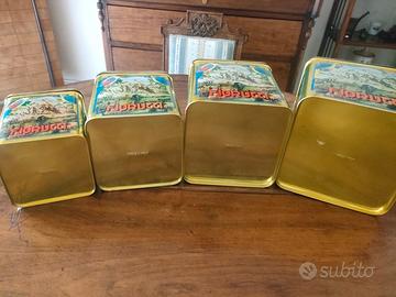 Lotto 4 Scatole Latta Fiorucci Vintage Originali Anni ’70/’80 Vendo 4 scatole in latta originali Fiorucci vintage, con finestra frontale trasparente e grafica storica multicolore. Set composto da 4 misure diverse (come da foto). ✨ Oggetti autentici d’epoca, ideali per: •collezionisti di pubblicità vintage •arredamento retrò / industrial •allestimenti negozi o vetrine •appassionati del marchio Fiorucci 📌 Condizioni Ottime condizioni generali. Grafiche vivaci e ben conservate. Finestre trasparenti.
