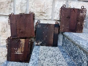 In buono stato con segni, crepe, vecchi tarli, mancanze di colore, condizioni varie a seconda della tavoletta. Comunque solide senza disfacimenti del legno. Pronte da appendere. Tavolette originali edite da Francesco Conz. Probabile anni 70 - 80 del XX secolo.