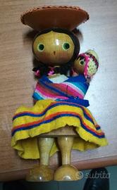5 Bamboline, corpo in legno e vestiti tipici del Guatemala alti 26 cm