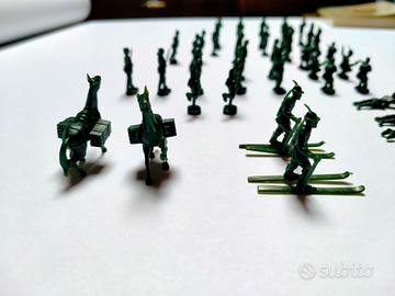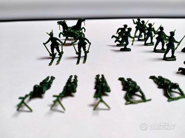Vendo lotto di 44 soldatini vintage in plastica da 2,5 cm. Degli anni ‘70/’80 a tema alpino con 2 soldatini su sci (figure rare) e 2 cavalli da trasporto. Buone le condizioni conservative.