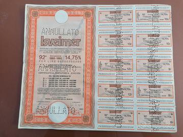 Fantastico lotto di 5 azioni italiane antiche da collezione, entra nel meraviglioso modo della scripofilia - Azione SIO - Società per l'industria dell'ossigeno e di altri gas - Certificato nominativo da 500 azioni da 800 Lire - Milano 1977/1981 - Azione SIO - Società per l'industria dell'ossigeno e di altri gas - Certificato al portatore da 1 azione da 800 Lire - Milano marzo 1962 - Azione Rumianca - Certificato nominativo provvisorio da 50 Lire - Torino 1948 - Azione Società Generale Immobiliare di lavori di utilità pubblica ed agricola spa - Certificato nominativo da 250 Lire - Roma 1971/1976 - Obbligazione ISVEIMER 14,75% - Istituto per lo sviluppo economico dell'Italia meridionale - Certificato al portatore 92' emissione 1985-1992 da 1 obbligazione 14,75% da 1000000 Lire - Napoli febbraio 1985 Certificati azionari autentici (non sono una riproduzione) ben conservati, potrebbero presentare dei piccoli segni dovuti dal tempo e dall'originalità dei pezzi. I titoli spediti potrebbero non essere quelli in foto