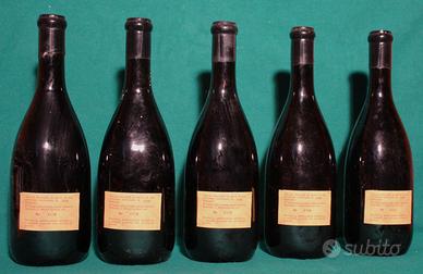 5 antiche Bottiglie - Vino Barolo, anno 1970 prodotto da Giovanni Scanavino Cascina Zoccolaio, Priocco d'Alba, Gradazione 13,5% capacità bottiglia 0,720 ,Altezza della bottiglia: ca. 28 cm. Peso: 1 290 grammi.