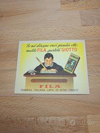 Condizioni buone con normale ingiallimento della carta tipico dell'epoca. Perfette per collezionisti di materiale pubblicitario vintage, memorabilia scolastica, storia della grafica italiana o appassionati del marchio FILA/GIOTTO. Interessante documento storico dell'educazione e della pubblicità anni '50.