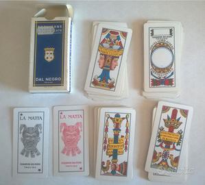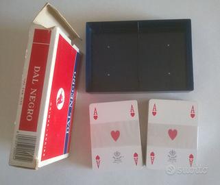 Vendo lotto di 5 mazzi di carte da gioco originali Dal Negro (Treviso). Tutte le carte sono in condizioni eccellenti, usate pochissimo, provenienti da collezione privata. Il lotto comprende: 1. Charta Negro (Elegante astuccio rigido): * Dimensioni scatola: 15.5x11x2.5 cm. Set da 40 carte. * Condizioni: Carte perfette, raramente utilizzate. L'astuccio presenta leggeri segni del tempo. 2. Set Dal Negro Bridge - Ramino (Scatola Rosso e Blu): * 2 Mazzi (Rosso e Blu) in contenitore di plastica. * Ogni mazzo: 52 carte + 2 Joker + carta segnapunti. * Condizioni: Carte pulite, L'astuccio in cartone con lievi segni di usura (come da foto). 3. Edizione Speciale "Il Gazzettino" - Poker Plastificate: * Mazzo da 52 carte + 2 Joker. Versione Plastificata. * Condizioni: Come nuove, raramente utilizzate. 4. Carte Trevisane Dal Negro Plastificate (Blu): * Mazzo da 52 carte + 2 Matte. Versione Plastificata. * Condizioni: Carte pulite, ottime per giochi regionali. Vendita in blocco "visto e piaciuto". Spedizione tracciabile unica per tutto il lotto.