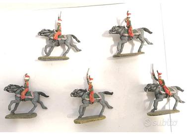 Lotto 5 Soldatini Mamelucchi della Guardia Imperiale Francese in Piombo Del Prado - BATTAGLIA DI AUSTERLITZ 40-45 MM. Lotto composto da 5 Soldatini raffiguranti Mamelucchi della Guardia Imperiale Francese a Cavallo prodotti dalla Del Prado per ricreare il diorama della battaglia di Austerlitz, altezza 45 mm, in buonissime condizioni (mancano un paio di armi). Prego vedere le foto che sono parte integrante della descrizione, riceverete esattamente quello che vedete in fotografia,