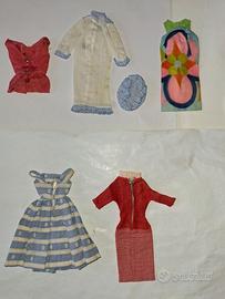 Lotto 5 vestitini vintage di Barbie anni 60-70 Mattel proveniente da collezione privata. Condizioni buone, posso venderli separatamente o in sottolotti a 25 euro cadauno