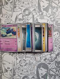 Vendo lotto misto di oltre 50 carte Pokémon originali. Il mazzo contiene: Carte Pokémon comuni e non comuni. Carte Addestramento e Stadio. Energie Base. Carte Codice per il gioco online. Ideale per chi vuole iniziare a giocare o per bambini. Venduto in blocco.