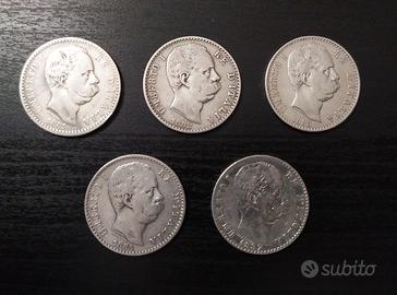 Lotto 5x 2 Lire Umberto I – date comuni, circolate