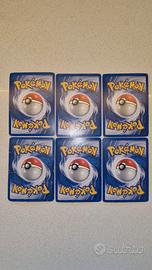 Lotto 6 carte Pokemon originali Vintage contenente Pikachu ed i tre starter del set Fossil del 2000 e Neo Genesis 2001 prima edizione in lingua italiana: