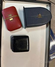 Propono in vendita interessante lotto per collezionisti e amanti dell'orologeria d'epoca, composto da 6 pezzi originali con grande fascino e patina del tempo: 1. Tre Orologi da Viaggio (Svegliette): • Orologio a scorrimento (Shutter Clock): con custodia in pelle rossa, quadrante rettangolare con numeri arabi. • Orologio da tavolo decorativo: stile "pendina" in metallo smaltato rosso con decorazioni floreali, completo di custodia originale blu con interno in seta. • Orologio quadrato vintage: in astuccio di pelle nera. 2. Tre Orologi Storici: • Cronometro Minerva: pezzo tecnico di alta qualità con quadrante per la misurazione dei secondi e minuti. • Orologio da tasca antico: quadrante con numeri romani e scala 24 ore rossa (vetro con evidenti segni del tempo). • Orologio da polso automatico: marca Exactus, stile anni '60/'70 con datario.