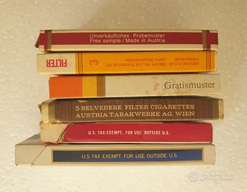 Lotto composto di 6 rari pacchetti di sigarette (vuoti) promozionali non in vendita FREESAMPLE come da descrizione nelle stesse confezioni, fine anni 70 - inizio anni 80. In perfette condizioni come da foto.