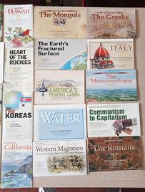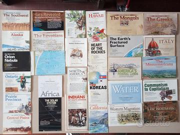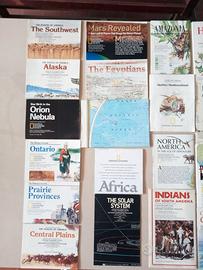 Blocco di cartine inserti della rivista National Geographic. Mappe. Cartine in ottimo stato generale, con qualche segno di utilizzo, ma molte non sono state neanche aperte. Anni 80, 90, 2000. Turismo. Geografia, cosmo, universo, sistema solare, pianeti, dinosauri, natura, stati uniti, mondo, continenti, storia, civiltà, impero, archeologia, antichità, antico, animali. Provengono da riviste mensili per studio, collezionismo.