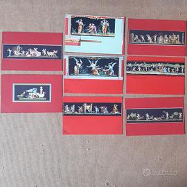 Raffiguranti affreschi e dipinti della Pompei antica con caratteristico sfondo rosso pompeiano che rende inconfondibili le cartoline di questa serie prodotte agli inizi del 1900 e ricercate dai collezionisti. Le cedo tutte insieme, non le vendo singolarmente.