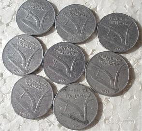8 MONETE VARIE DA 10 LIRE SPIGHE REPUBBLICA ITALIANA ANNI 50
