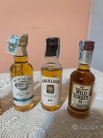 Vendo splendida collezione di 8 bottiglie di whisky in formato mignon (5cl), ideali per collezionisti o amanti del genere. Tutte le bottiglie sono vintage, originali, perfettamente sigillate e con livelli del liquido ottimali.