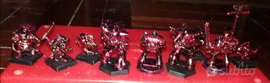 Vendo Lotto 9 miniature del gioco di strategia Warhammer 40.000 (40K) Fantasy Battle. Sono della fine anni 90. Le basi nere con le fessure dove si inseriscono i personaggi sono in plastica ruvida. I personaggi, anche dal peso decisamente leggero, sembrano di plastica liscia. Buone condizioni (visionare foto galleria per verificare quale miniature sono presenti nel lotto).