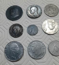 lotto di 9 monete,7 regno d Italia, 1 stato pontificio, 1 Repubblica 20c 1913 20c1919 50c1941 20c 10c1925 5c1921 1c1913 1soldo 1867 2lire 54