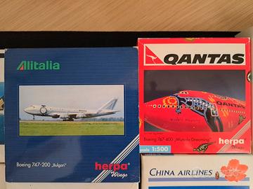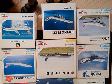 Vendo magnifico lotto di aerei di linea marca Herpa per la maggior parte scala 1:500 completi di scatole e plastiche di carta originali, solo aperti per vederli e mai esposti come nuovi. Tra queste ci sono due oggetti rari il Boeing 747 Bulgari e il Qantas livrea speciale. Sono 18 pezzi e sono vendibili anche singolarmente a prezzo da definirsi. Gli oggetti sono rari e il prezzo di acquisto era altro quindi fate offerte serie. Si preferisce ritiro a mano ma disponibile anche spedizione. Astenersi affaristi sognatori o curiosi perchè non ho tempo da perdere.