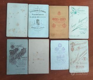 Lotto di otto fotografie/card cartonate con soggetti di fine 1800.