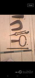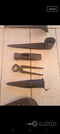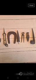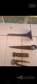 lotto di antichi attrezzi da lavoro in ferro battuto, perfetti per collezionisti, amanti dell'antiquariato