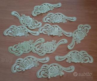 Assortimento di applicazioni in pizzo e passamaneria, perfetto per cucito creativo o personalizzazione abiti o lingerie: