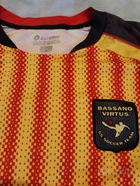 Lotto Bassano Virtus maglia indossata match worn scambiata sul campo da Tommy Maistrello 9 il 15/8/2016 nella partita di Coppa Italia Tim Sampdoria-Bassano 3-0 colletto a barchetta maniche corte stemma ricamato sul petto sx patch sulla manica dx nome numero e sponsor in plastichina rara tg.XL in ottime condizioni