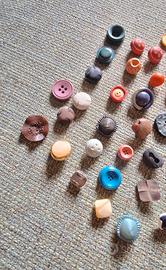 lotto di bottoni vintage di diverse forme e dimensioni, in plastica.