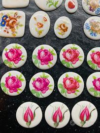 Splendido lotto di cabochon in ceramica vintage, perfetti per la creazione di gioielli (orecchini, anelli, spille, pendenti) o per progetti di scrapbooking e decorazione.