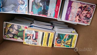 Vendo come da foto carte di One Piece. Sono circa 6 kg. Sono carte di diverse espansioni tutte common e uncommon (no rare o sr), non rovinate, in ottime condizioni. Tutte lingua eng. Ci sono dentro ovviamente carte doppie.