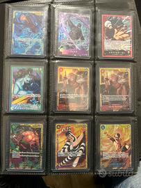 Rimetto in vendita, ultimo lotto di carte One Piece, varie espansioni, inglesi e giapponesi, tutte le carte sono M/NM. Purtroppo posso caricare sotto sei foto, non ci sono tutte, per le restanti foto contattatemi e ve le mando.