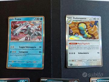 Vendo lotto di carte Pokémon originali, tutte RARE / HOLO, in condizioni Near Mint (appena sbustate). Il lotto include 5 carte rare: Palkia – Holo Rara Darkrai – Holo Rara Grimmsnarl – Holo Rara Lunaruggente (Roaring Moon) – Holo Rara Dudunsparce – Holo Rara 📌 Tutte le carte sono originali, non proxy 📌 Condizioni Near Mint 📌 Ideali per collezionisti, raccoglitori o per completare set Vendita in lotto, come da foto. Solo spedizione, non consegno a mano.