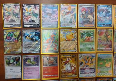 lotto composto da 45 carte pokemon la maggior parte sbustate e messe nel raccoglitore.