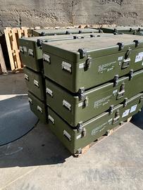 Casse da Trasporto Surplus Militare 140x60x35 cm in vetroresina, lotti da 3 o 6 pezzi. Caratteristiche: provenienza: surplus esercito Olandese dimensioni esterne: 140x60x35 cm dimensione del lotto: 3 o 6 pezzi costruzione esterna: vetroresina verniciata costruzione interna: vetroresina con rivestimento in schiuma maniglie, serrature e cerniere in metallo distanziali in gomma condizioni: buone condizioni - alcuni pezzi potrebbero presentare dei difetti come (ma non limitati a): graffi, righe, rotture, buchi, disallineamenti, serrature difettose, serrature mancanti, scritte, adesivi, usura dovuta all'uso e alla conservazione prolungata, danni da umidità. spedizione su pallet - si prega di indicare eventuali difficoltà per la ricezione del lotto ritiro in zona gratuito disponibile ATTENZIONE: gli oggetti di questa inserzione sono usati, in buone condizioni, alcuni pezzi potrebbero presentare dei difetti come (ma non limitati a): graffi, righe, rotture, buchi, disallineamenti, serrature difettose, serrature mancanti, scritte, adesivi, usura dovuta all'uso e alla conservazione prolungata, danni da umidità. Le foto sono indicative di ogni lotto, si prega di richiedere foto aggiuntive per una valutazione più accurata. NON SONO ACCETTATI RESI, gli oggetti possono presentare difetti, l'acquirente accetta l'acquisto di articoli che potrebbero essere difettosi.