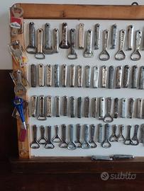 quadro pronto per appendere in taverna o bar contenente n.131 cavatappi in metallo pubblicitaria tutti diversi da coca -cola a pepsi cola a acqua Ferrarelle a birra dreher .......... solo in blocco. no spedizione. mis.cm.100 largo. per cm.80 altezza.