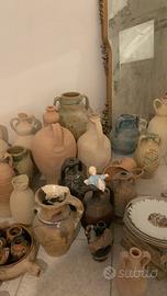 Ampio assortimento di oggetti vintage e antichi, ideale per arredamento rustico, b&b o collezionisti. Il lotto include oltre 30 pezzi tra anfore in terracotta di varie misure, vasi smaltati decorati a mano, piatti in ceramica vintage