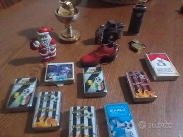 Accendini, un pacchetto di fiammiferi vintage chiuso sigillato, un porta accendino più sorpresa. Il tutto in un unico lotto.