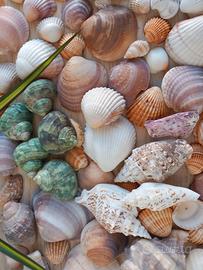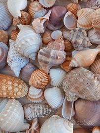 Collezione di conchiglie e stelle marine naturali, ideali per decorazioni marine, lavoretti creativi, allestimenti estivi o collezionismo.