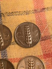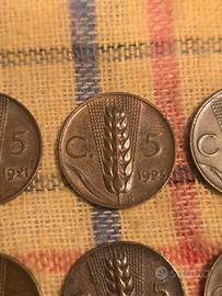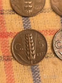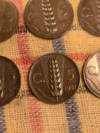 lotto di 8 monete da 5 centesimi spiga tra cui anche la rara 1937 1921-1923-1932-1933-1935-1936-1937(2) condizioni come da foto.